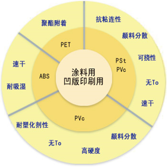 以速乾性、塑料附著性、顏料分散性為特點,按照基材的不同提供不同型號的產(chǎn)品。